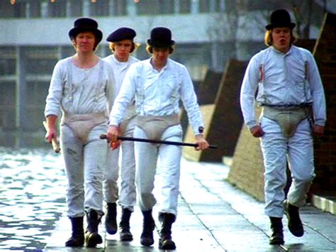 I think a large part of the reason why this question persists is how Alex is painted as essentially unreachable. Fraser mentions this quite frequently in “Ambivalences,” to the point where he connects the unreachable-ness of a violent character to several nihilistic philosophers. According to Fraser, behind every unreachable character lies an unreachable organization, and behind every unreachable organization is “a philosophical nihilism which it is peculiarly tempting for a good many people to see not simply as one philosophical position among a number of others, but as a revelation to use of the truth of the human condition,” (Fraser 23). The final scene of the movie crystalizes this point to perfection; despite everything that he’s been through, from undergoing a horrific psychological experiment to nearly drowning at the hands of his former friends to attempting to kill himself, Alex is still the unhinged monster that we met at the start. In the end, reform is just a performance Alex puts on to persuade others that he is a changed man. This drastically contradicts traditional narrative structure, which predicates that a character ends up in a different state than they were in the story’s beginning. As Alex fantasizes about having sex with a woman in front of an audience dressed in 19th century clothing, his statement of “I’m cured, all right!” is a perfect encapsulation of the nihilism Fraser discussed. For all of society’s efforts to “cure” him of his violent tendencies, Alex is the same person that he’s always been. On one hand, this is a disturbing end to a truly twisted story, as the rapist and murderer has learned nothing. But on the other hand, there is a sense of depraved optimism in Alex’s statement. For everything that society threw at him, he is nevertheless the master of his own free will, and nothing can change him. As discomforting as it is, Kubrick’s interpretation of the source material tells a deeply radical tale of humanity and free will, where even the most depraved members of society deserve to have at least some freedom.