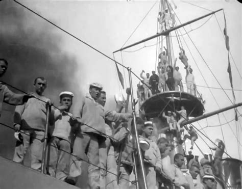 One day in 1905, a group of soldiers on the Russian naval battleship Potemkin complain about the quality of rations they are given on the ship, only to be violently suppressed by the higher-ups. As a result, a mutiny erupts, leading to the death of Vakulinchuk, a passionate supporter of the revolution in Russia. When the townspeople of Odessa celebrate the mutiny, the military show up and mercilessly shoot fleeing civilians, including women and children. Despite the prospect of battle with Tsarist ships, the remaining Potemkin sailors wave a red flag, and the Tsarist ships refuse to open fire on their comrades.