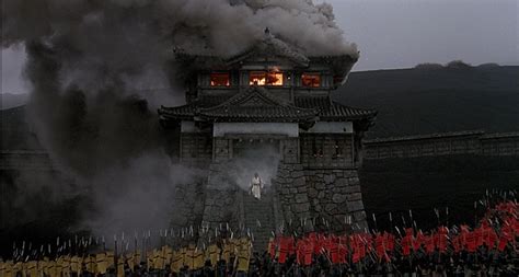 The colors in this film are simply magnificent. The three sons are color-coded so you know which forces are represented on the battlefield: the gilded yellow for Taro, the raging red for Jiro, and the serene blue for Subaro. For the disassembled patriarch, his white is every color of the spectrum absorbed into one person, until he is no longer someone who stand on his own but rather a shell of his former self. Stumbling upon the ruins of a castle he once burned to the ground, his well of memory runs dry, until all he can do is question where and who he is. The nurse he has traveled with tries to keep up with him, but eventually even he gets tired of his mad king’s rants and lashes out at him. “In a mad world, only the mad are sane.” Such is the thesis of the film.