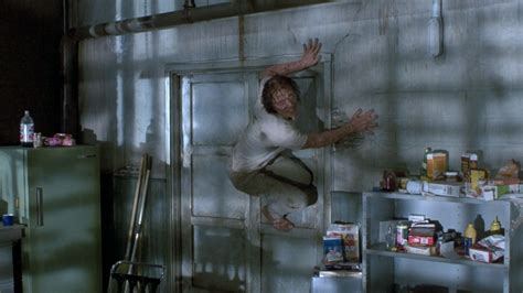 The scares go up in intensity, but Cronenberg doesn’t lambast you with them. There’s a few jump scares that are well-placed, like the inside-out baboon and the broken wrist of the man at the bar. But some of the most unnerving sequences happen when there’s little going on. Seth is working out early one morning, and he is displaying so much strength and finesse that Simone Biles would be impressed. It’s astonishing. But it’s almost too astonishing. Like something unnatural is at play. And of course, something is.